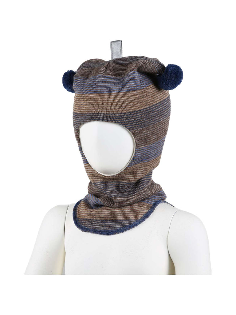 BALACLAVA / HETTELUE I ULL MED VINDSTOPP - KONGEBLÅ / BRUNMELERT