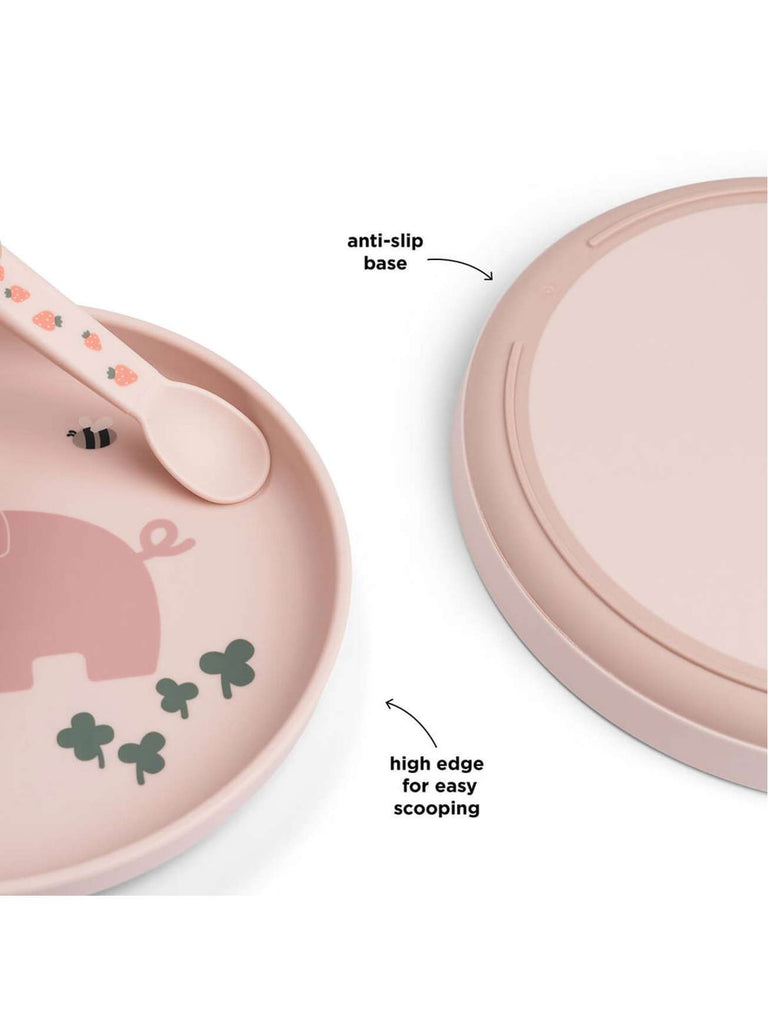Denne praktiske tallerkenen er designet for å gjøre måltidene enklere for de små. Den sklisikre bunnen holder den godt på plass, mens den høye kanten hjelper de små med å få til å spise.