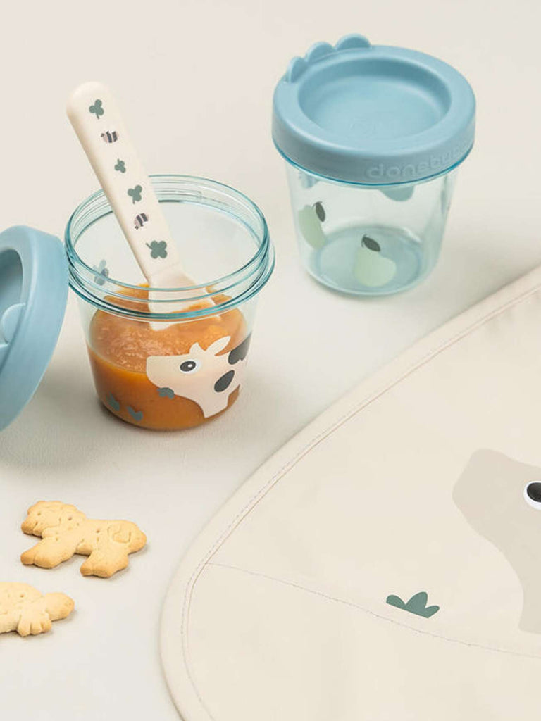 Laget av matgodkjent tritan, fri for BPA og andre skadelige stoffer, er disse beholderne trygge å bruke i både mikrobølgeovn og oppvaskmaskin. Med sjarmerende motiver av Dotti og pærer er de både praktiske og lekne. La en DEER venn hjelpe deg med å holde babyens mat og snacks trygg når du er ute og farter.