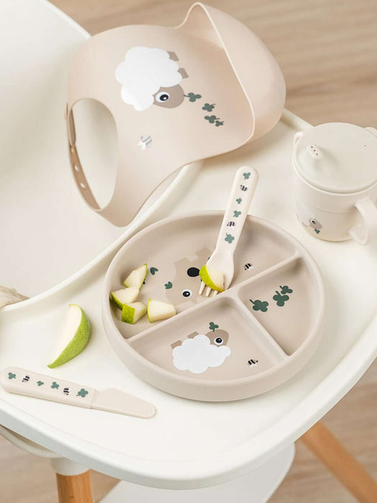 En praktisk sugekopp hindrer den lille i å dytte, velte eller kaste tallerkenen.