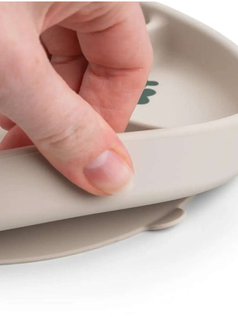 Denne tallerkenen har en praktisk sugekopp som hindrer den lille i å dytte, velte eller kaste den under måltidet.