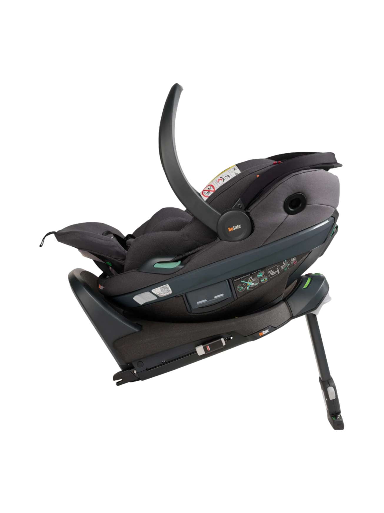 Setet kan rotere fra side til side når det er plassert på ISOfix-basen. Denne funksjonen gir deg enkel tilgang fra bildøren når du plasserer babyen i bilstolen, beskytter ryggen din og gjør det komfortabelt for den lille å bli spent fast.