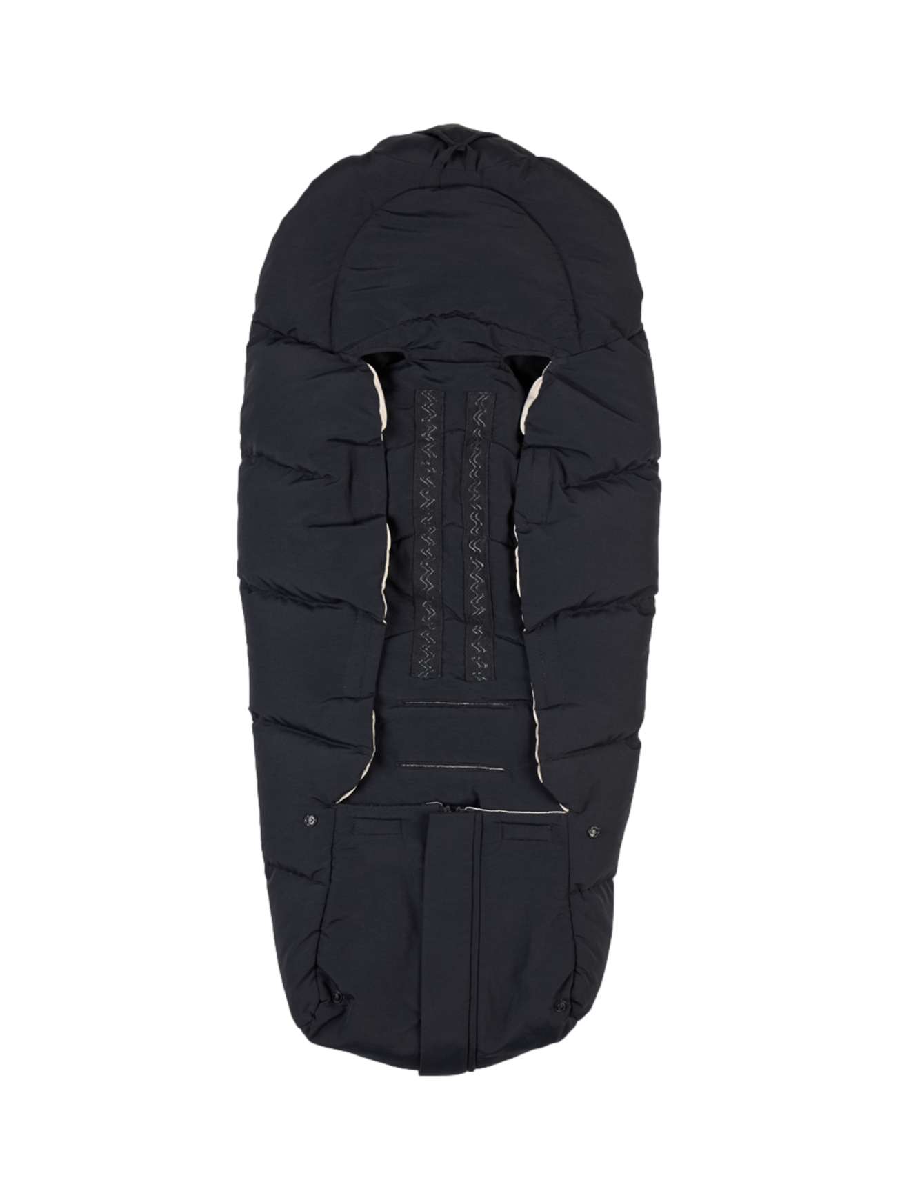 Posen er laget av naturlige og kvalitetssikrede materialer. Innsiden består av myk, økologisk bomull som føles behagelig mot barnets hud, mens fyllet i resirkulert polyester gir lett isolasjon som holder barnet komfortabelt i skiftende temperaturer. Utsiden er behandlet med BIONIC-FINISH®ECO, som gjør posen naturlig vannavvisende.