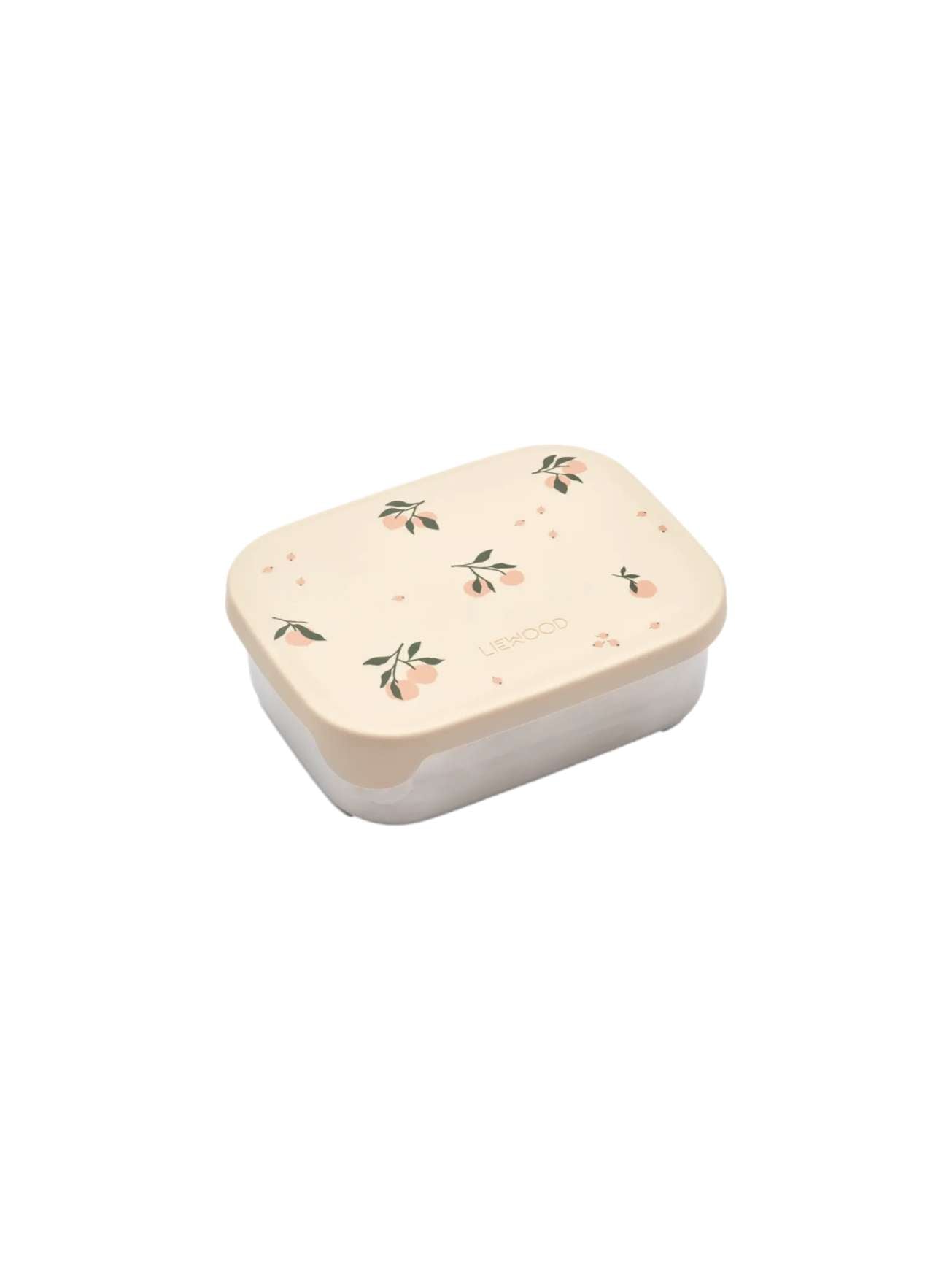 En lett lunsjboks i rustfritt stål med et søtt silikonlokk delt inn i tre praktiske rom.