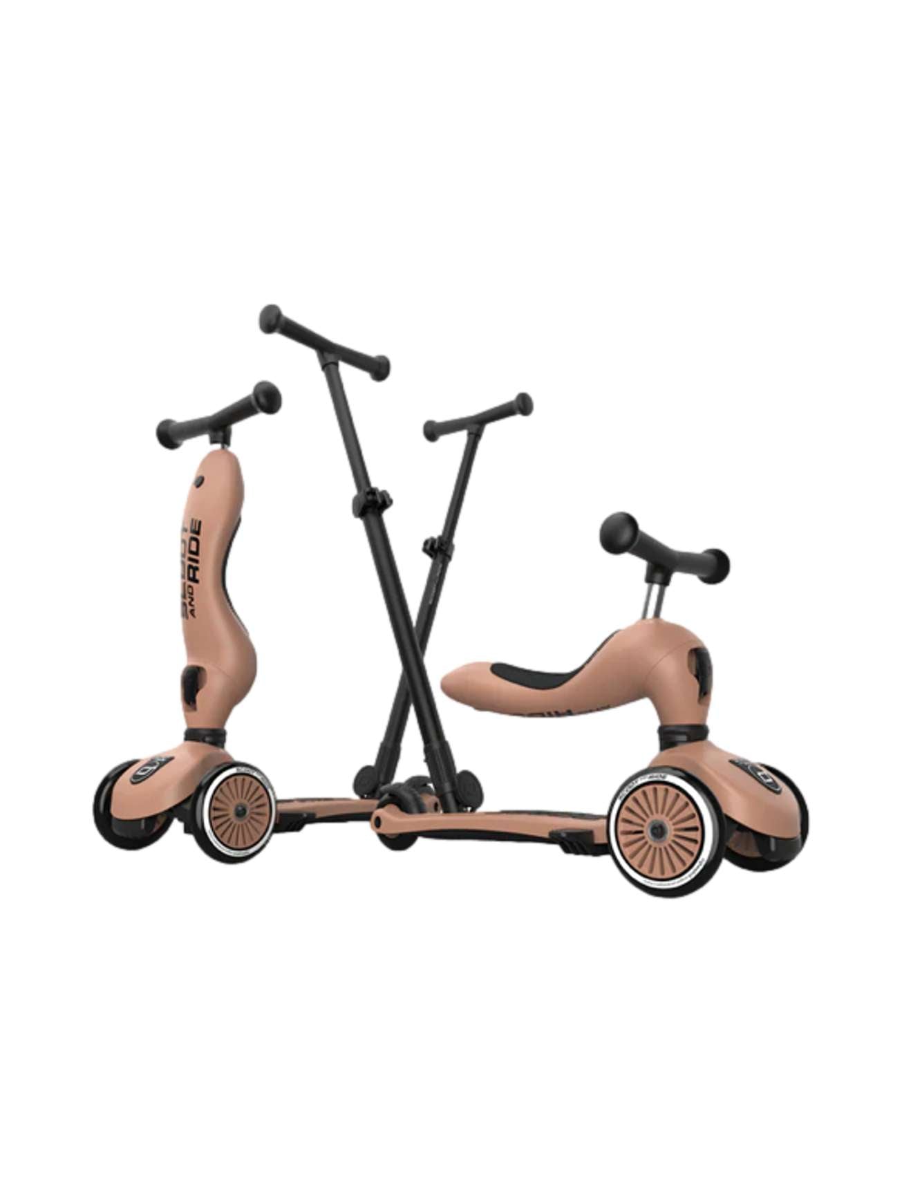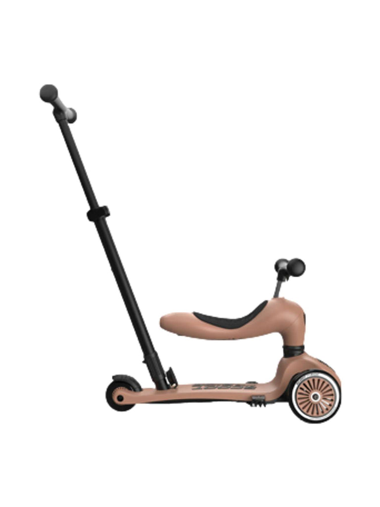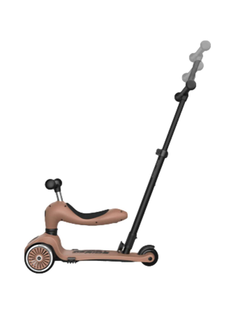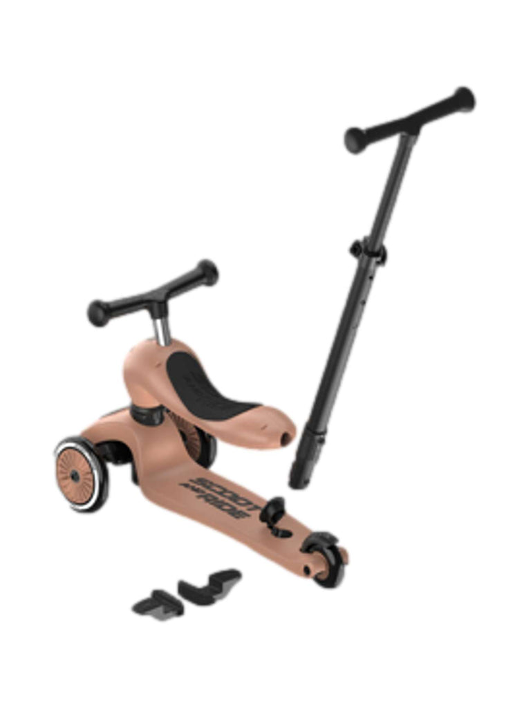 Highwaykick 1 Push and Go kombinerer alle fordelene med Highwaykick 1 med en ny, viktig funksjon: foreldre-skyvestangen. Nå er det mulig å skyve barn mellom ett og tre år komfortabelt, både sittende og stående. Den praktiske skyvestangen kan festes til fotbrettet på sparkesykkelen uten verktøy og kan justeres i tre forskjellige høyder. Fotstøtter kan også festes til fotbrettet slik at barna kan hvile føttene komfortabelt mens de blir skjøvet. Alle de velkjente funksjonene til Highwaykick 1, som 2-i-1-systemet og den høydejusterbare setet, er bevart med Push and Go. Dette betyr at denne modellen også vokser med barnet ditt.