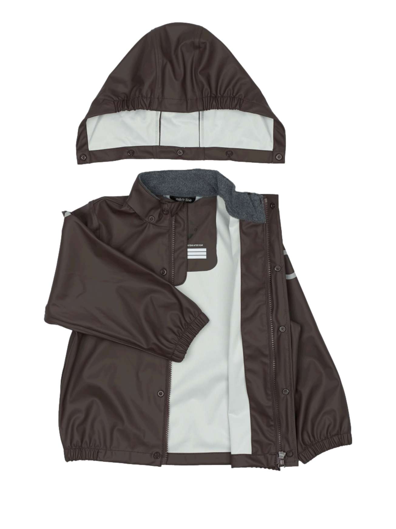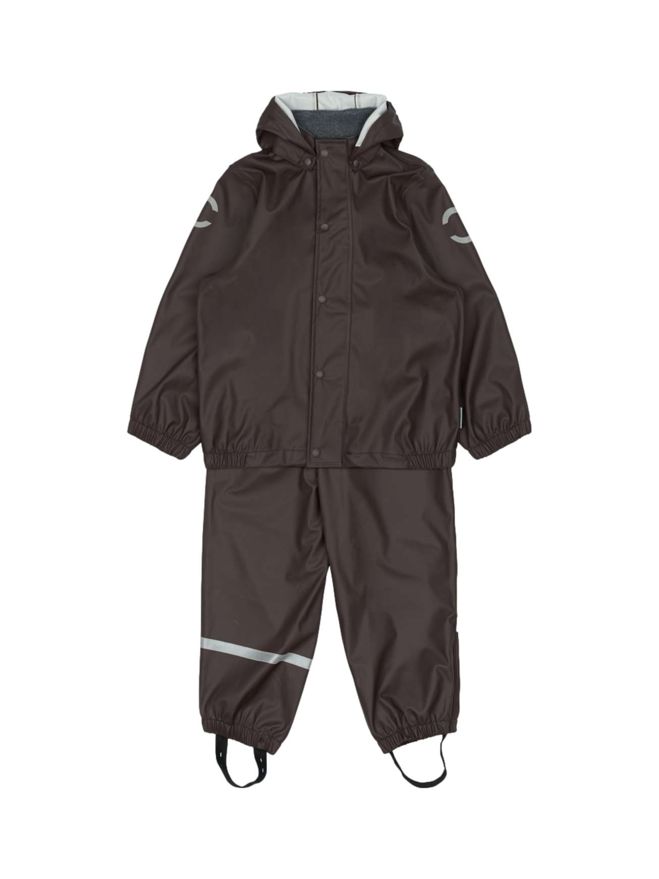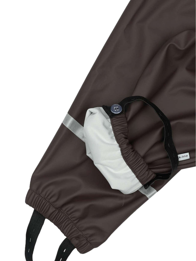 Regntøyet er utstyrt med reflekterende detaljer slik at barnet ditt kan bevege seg trygt i mørket. Regnsettet er selvfølgelig både vanntett og vindtett. Sømmene er sveiset, noe som forhindrer at vann trenger inn i skjøtene. Buksen har fotstropper som holder buksen under gummistøvelen.