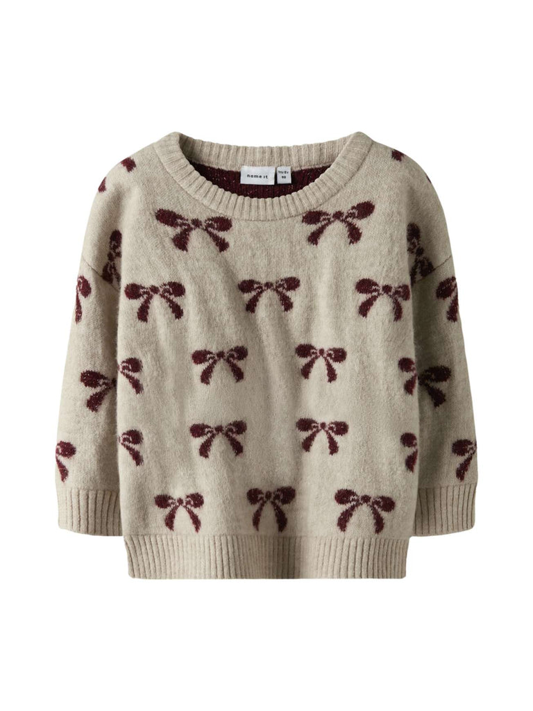 MINI SLØYFEDETALJERT STRIKKET PULLOVER - CEMENT
