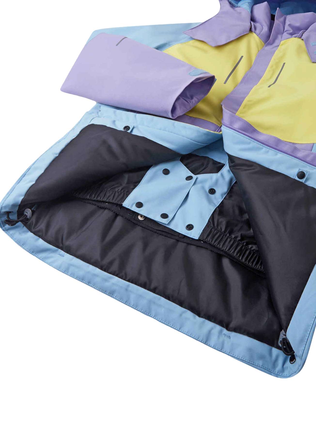 Denne ReimaTec-skijakken holder dem tørre med vanntette, vindtette egenskaper og forseglede sømmer. Det varme isolasjonen holder kulden ute. Jakken er perfekt for både skiløyper og lekeplasser, med snøspesifikke funksjoner som en festemekanisme mellom jakke og bukse.