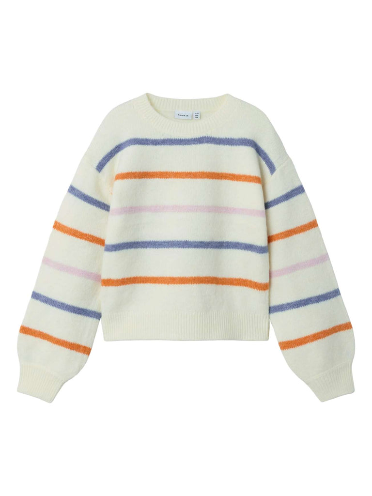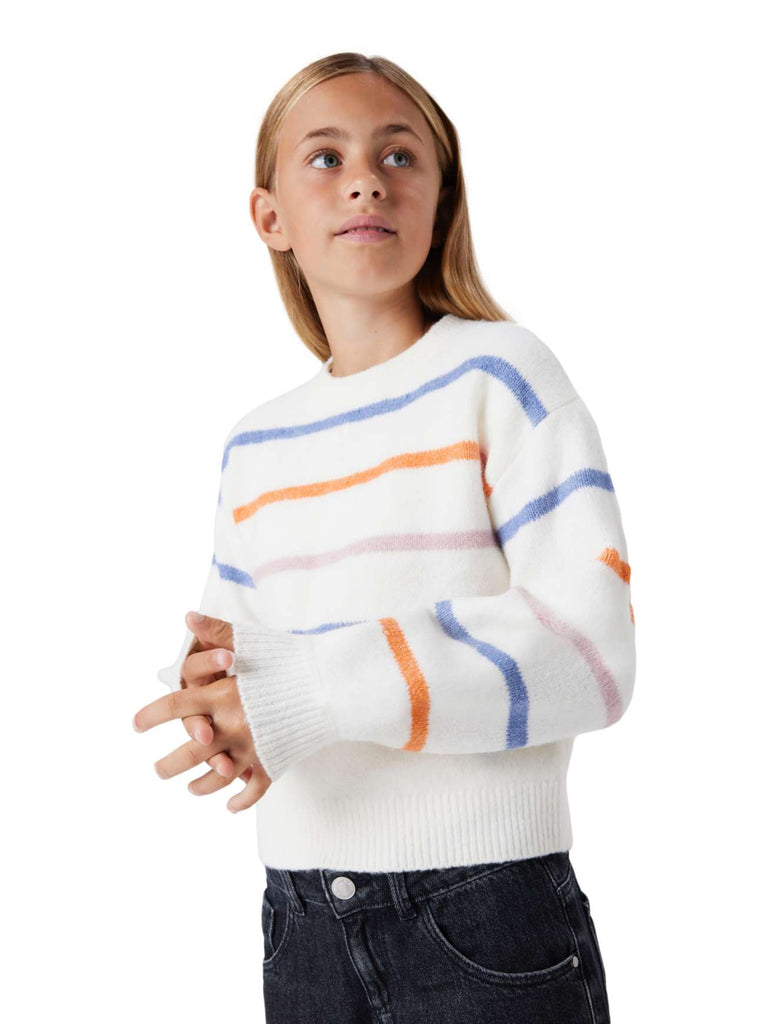 KIDS LANGERMET STRIKKET PULLOVER - CLOUD DANCER