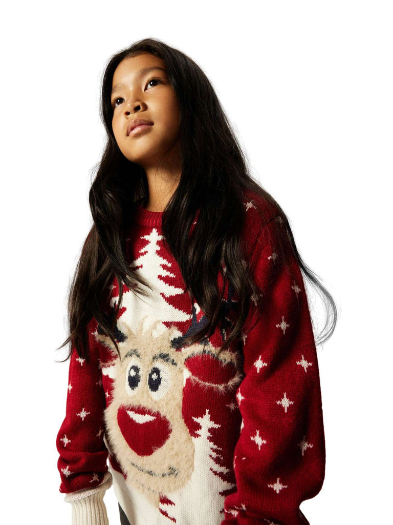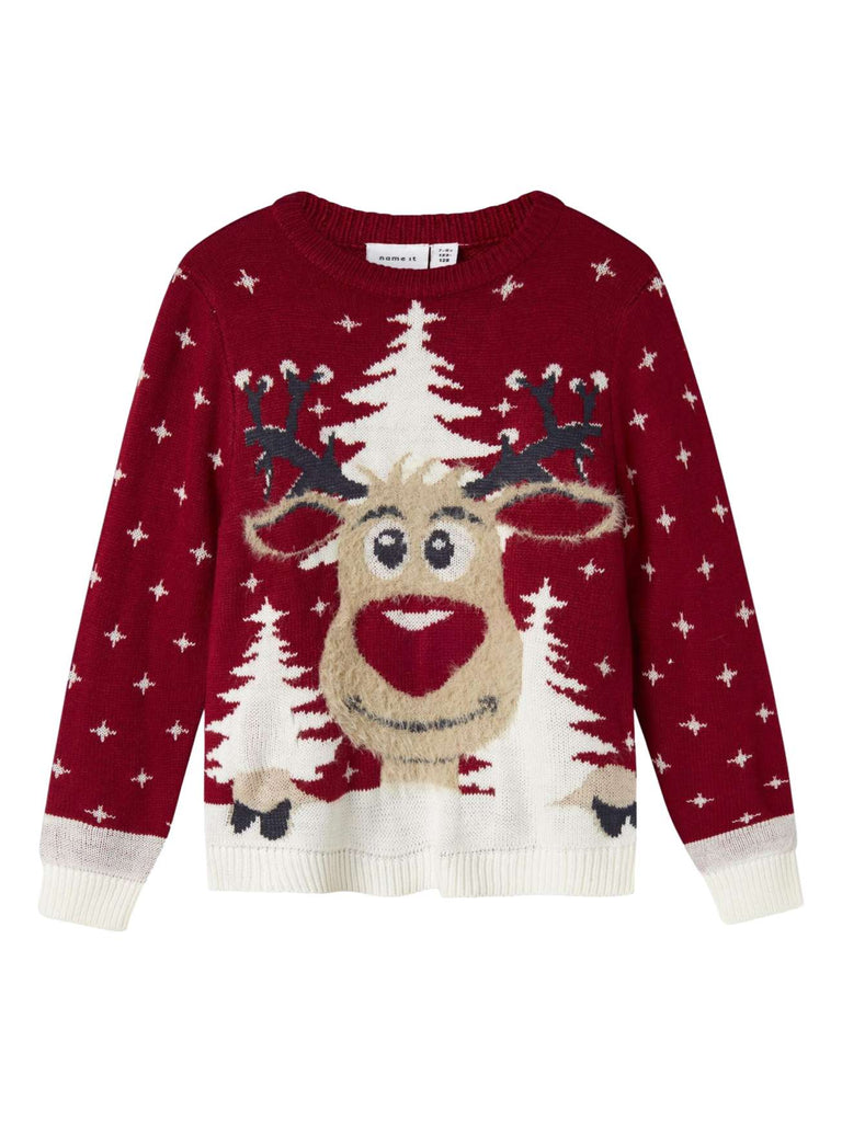 KIDS JUL STRIKKET PULLOVER - JESTER RED
