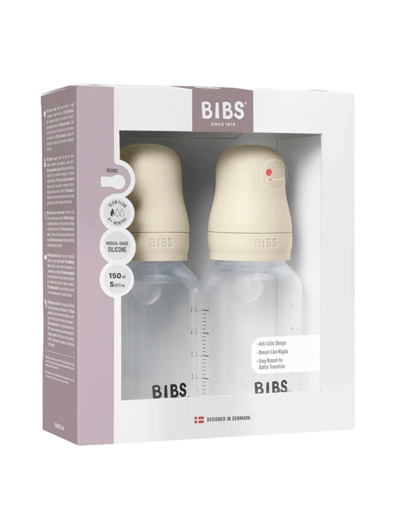 TÅTEFLASKER KOMPLETT SETT 2 PAKK 150ML SILIKON SLOW FLOW - IVORY