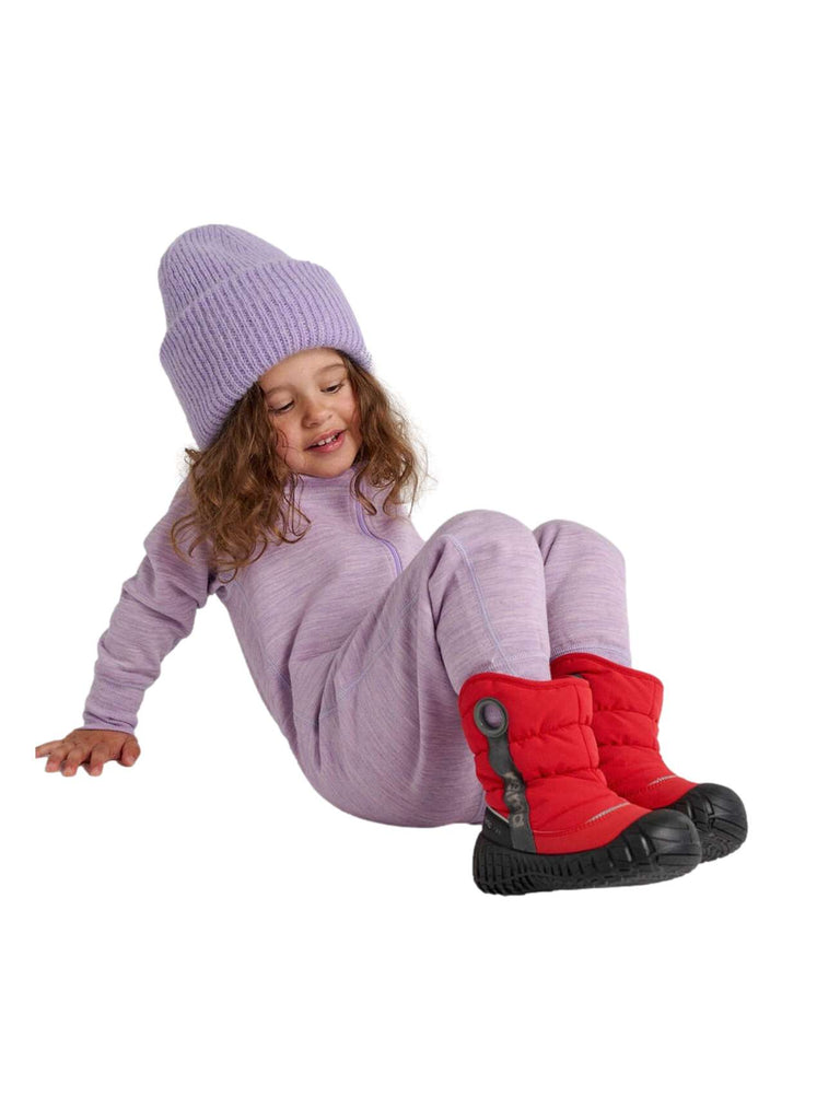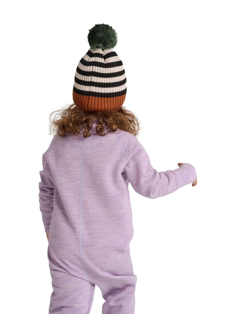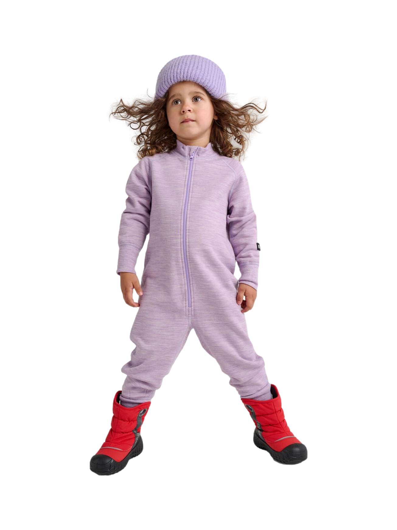 Småbarnsdressen i myk ull kan brukes inne eller som mellomlag. Merinoullen føles myk mot huden og gir topp temperaturregulering. Børstet innside for ekstra varme.