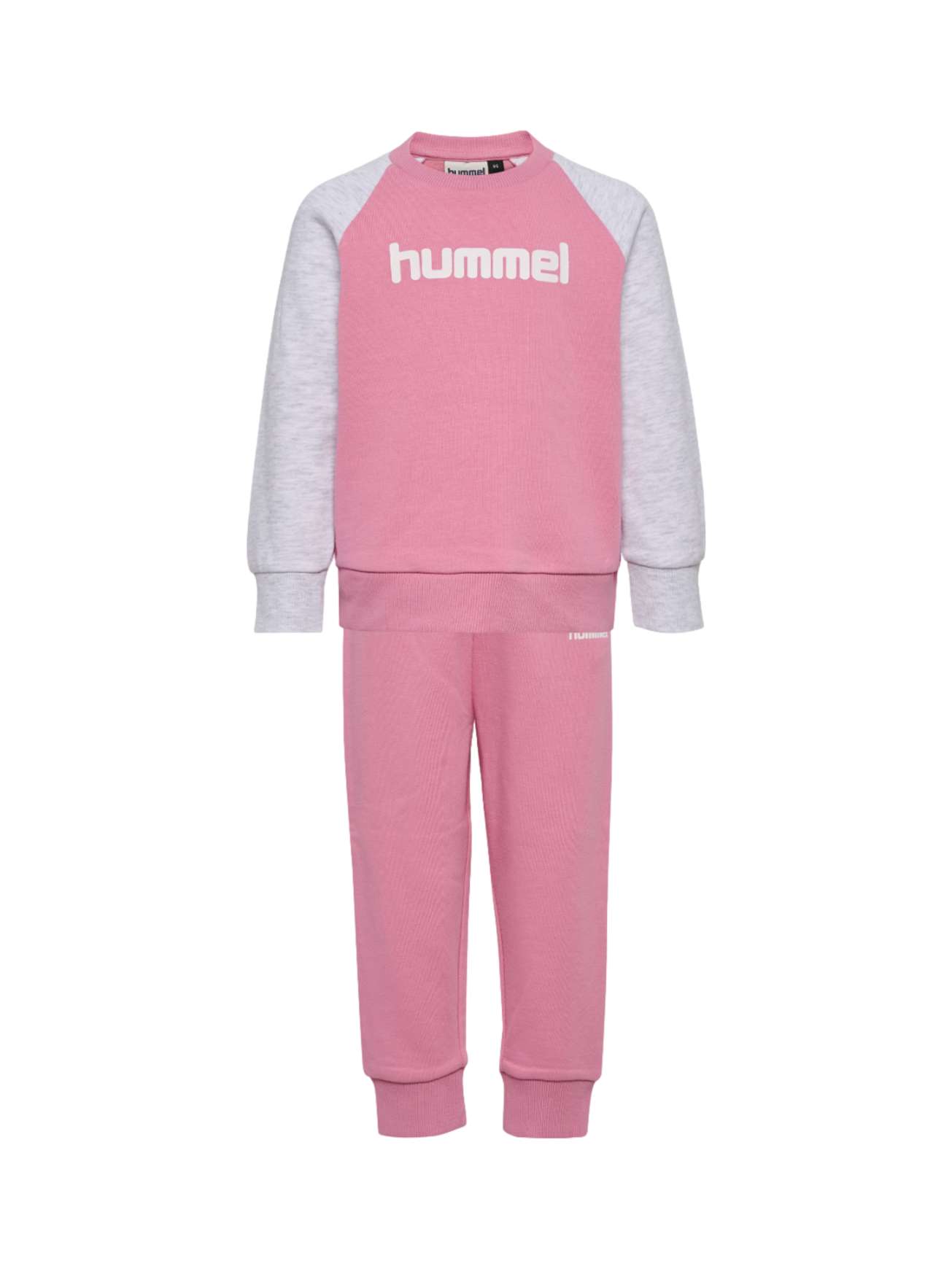 Denne hummel-joggedressen har en komfortabel og avslappet passform og er laget av en myk blanding av bomull og polyester. Toppen med rund hals har fargede ermer og en stor trykt logo på brystet, mens joggebuksen har elastisk linning og ankelmansjetter for en tettsittende passform.