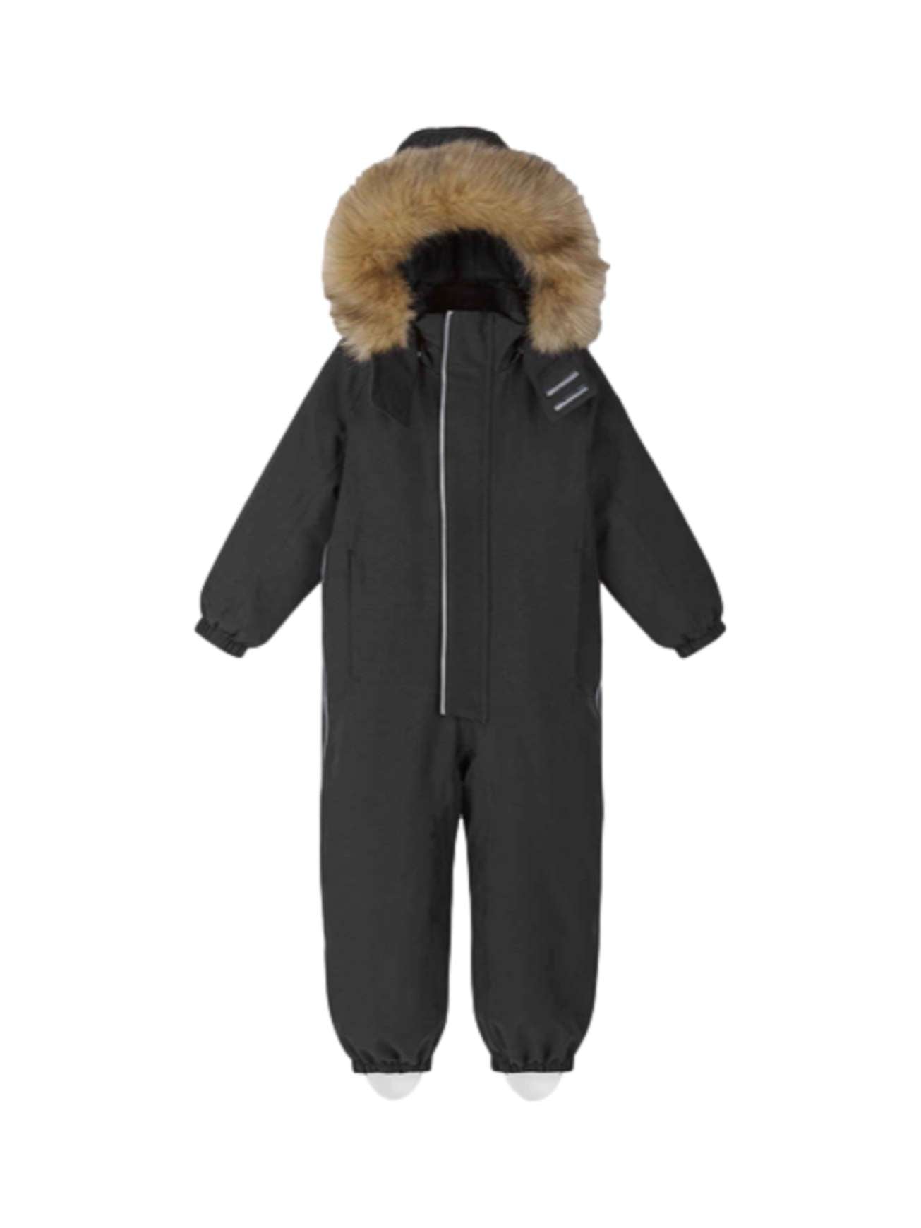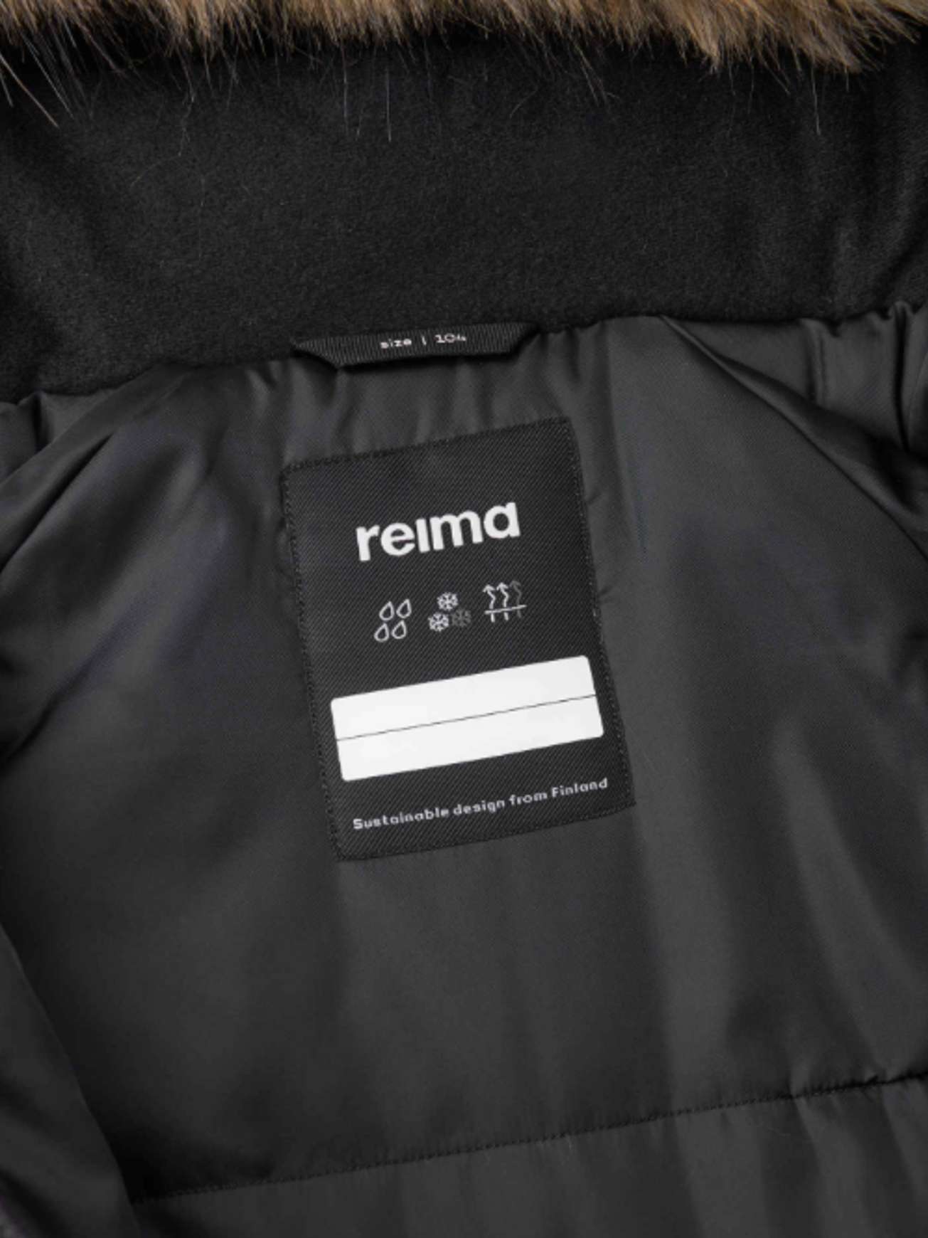 Denne slitesterke vinterdressen til barn fra Reimatec-serien er vanntett med forseglede sømmer. Den er laget i et vindtett og pustende materiale som holder barnet varmt og tørt uten at det blir klamt. Den har glatt polyesterfôr og slitesterke forsterkninger på bena. Dressen har et rett snitt og kan justeres i midjen for individuell passform. Mansjettene og buksebena kan også reguleres. Den avtakbare og regulerbare hetten beskytter mot kald vind – og er dessuten trygg når barna leker ute. Hetten er festet med trykknapper og løsner lett hvis den skulle hekte seg fast i noe. Den har myk og avtakbar fuskepelskant. Materialet er smussavvisende, men kan legges i tørketrommelen, og refleksdetaljene gir en kul stil.
