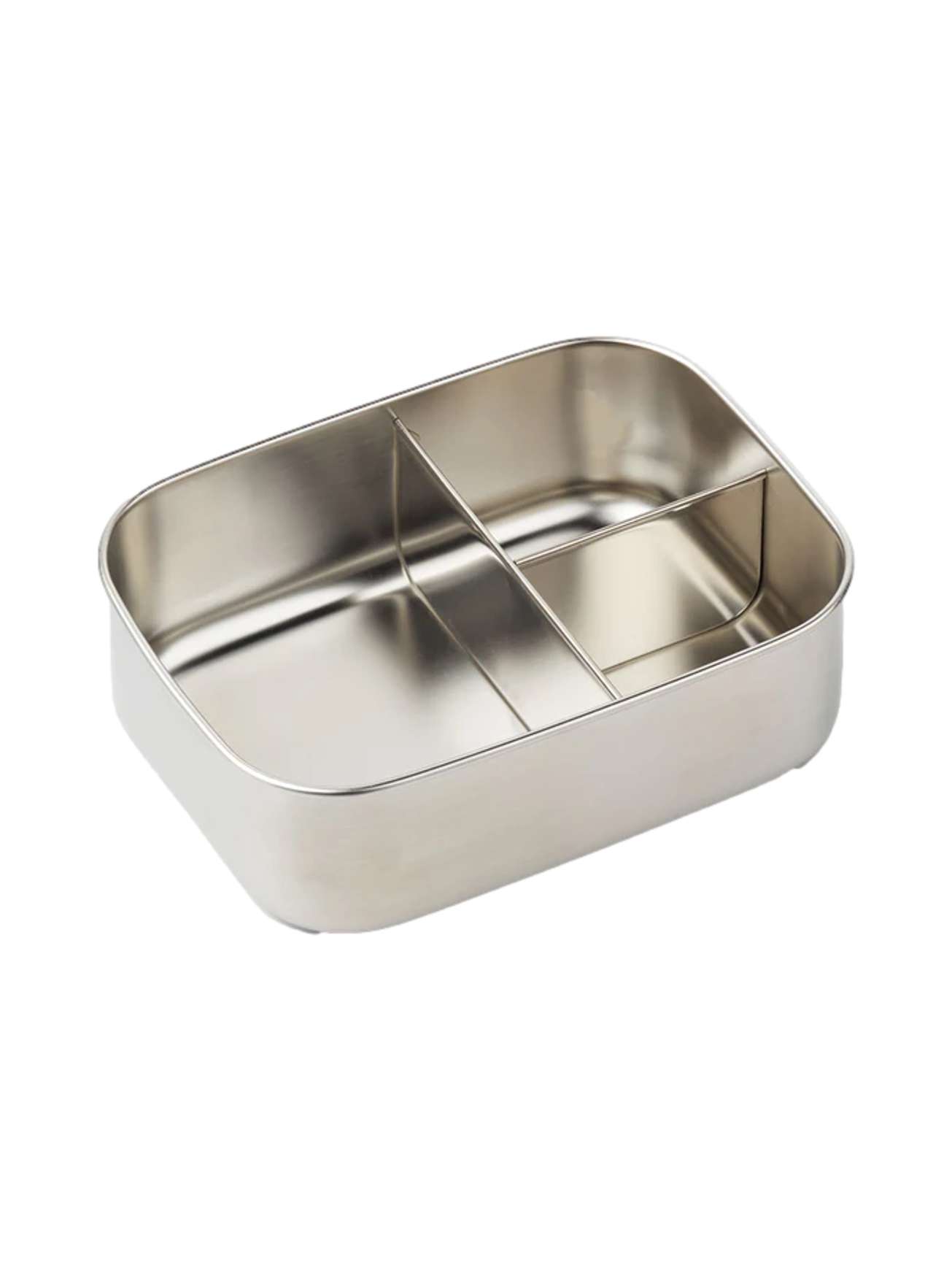 En lett lunsjboks i rustfritt stål med et søtt silikonlokk delt inn i tre praktiske rom.