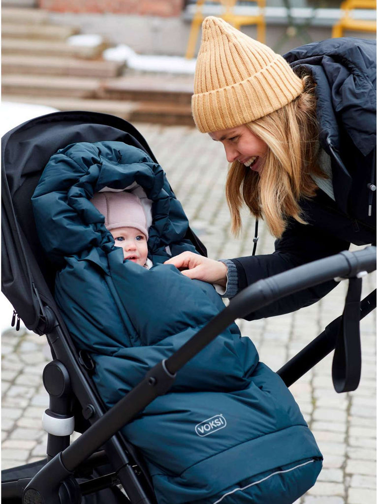 Vognposen er designet med innovative armåpninger som kan åpnes og lukkes med glidelås, og som gjør at barnet kan ta en aktiv del i det som skjer rundt seg, samtidig som det holder seg varmt i vognposen. Den unike utformingen av ryggåpningen gjør at denne vognposen lett kan monteres og brukes i vogner med ulike seler. Voksiposen er utstyrt med et antisklimateriale i ryggen som gjør at den holder seg på plass i vognen uten å skli. Forlengerdelen er inkludert i vognposen som enkelt kan åpnes opp med en glidelås i bunnen når barnet har behov for mer plass. Når barnet er lite vil den inkluderte forlengerdelen fylle nederste delen og sikre ekstra varme og komfort. Det følger med et mykt hodeunderlag som både gir ekstra komfort for babyen og beskytter stoffet under hode som både gir ekstra komfort for babyen og beskytter stoffet under hode. Snoren rundt hodeområde kan justeres etter værforhold og barnets preferanser. En sentrert glidelås i front gir lett tilgang på barnet og den brede klaffen kan brukes til å tette ekstra godt om barnet. Husk å ha godt med luft rundt hode til barnet og la alltid barn sove under oppsyn.
