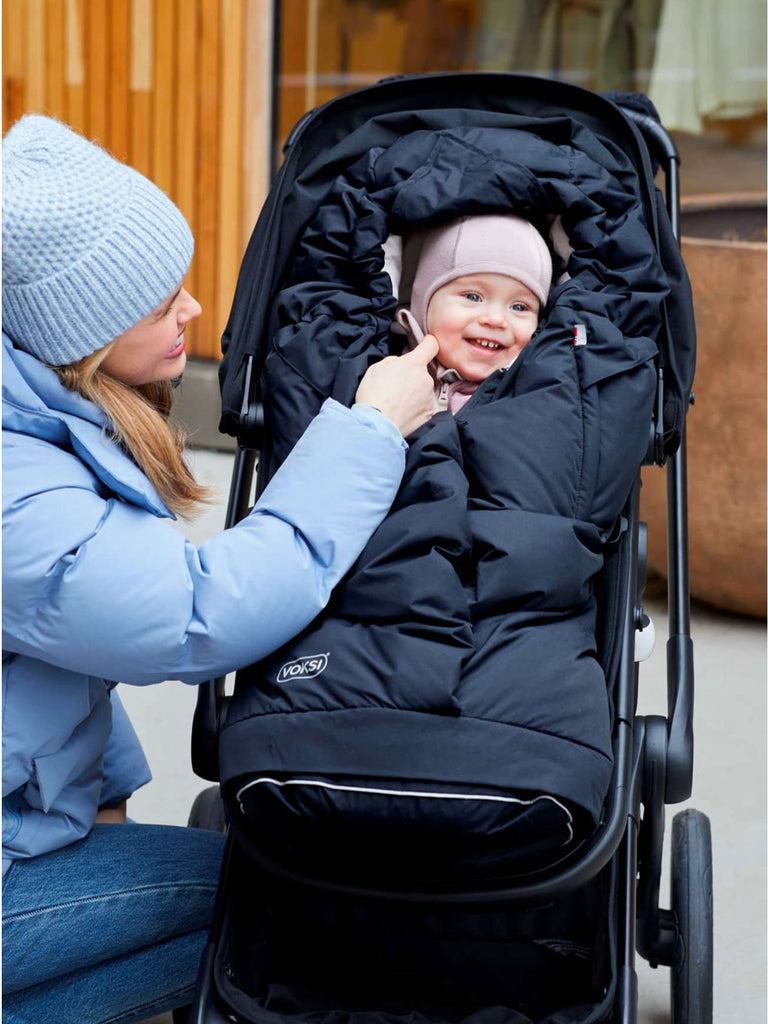 Vognposen består av naturlige og kvalitetssikre materialer som ull og dun. Voksi City North har ull i ryggen som sørger for behagelig temperatur og at barnet holder seg tørt. Fyllet er av høy kvalitetsdun, og vognposen er sydd med en unik bokskonstruksjon som hindrer at kulde slipper inn. Det er luften mellom dunfiberne som gir maksimal isolasjon og holder barnet varmt igjennom høst og vinter. Stoffet på innsiden er laget av myk bomull, som gjør det mykt og behagelig for babyen å ligge på. Ytterstoffet er vindtett og har en vannsøyle på 8000 med BIONIC-FINISH®ECO. Når det regner mye anbefaler vi å bruke regntrekk på utsiden. Alle materialene i Voksi City North er OEKO-TEX®standard 100, klasse 1 sertifisert, som er et kvalitetsmerke som tilsier at ingen av materialene i produktet inneholder skadelige kjemikalier. Voksi City North har maksimal isoleringsevne.