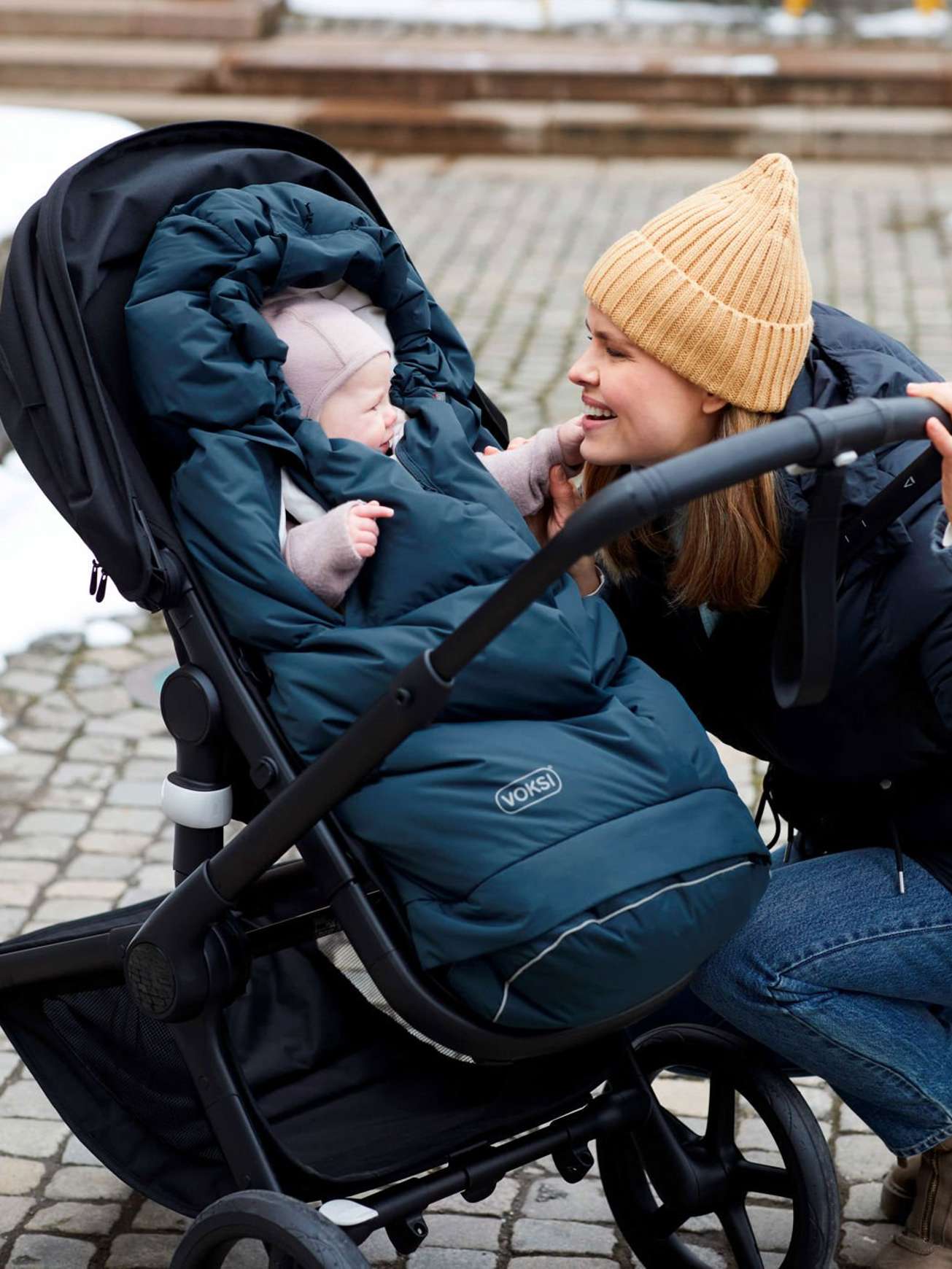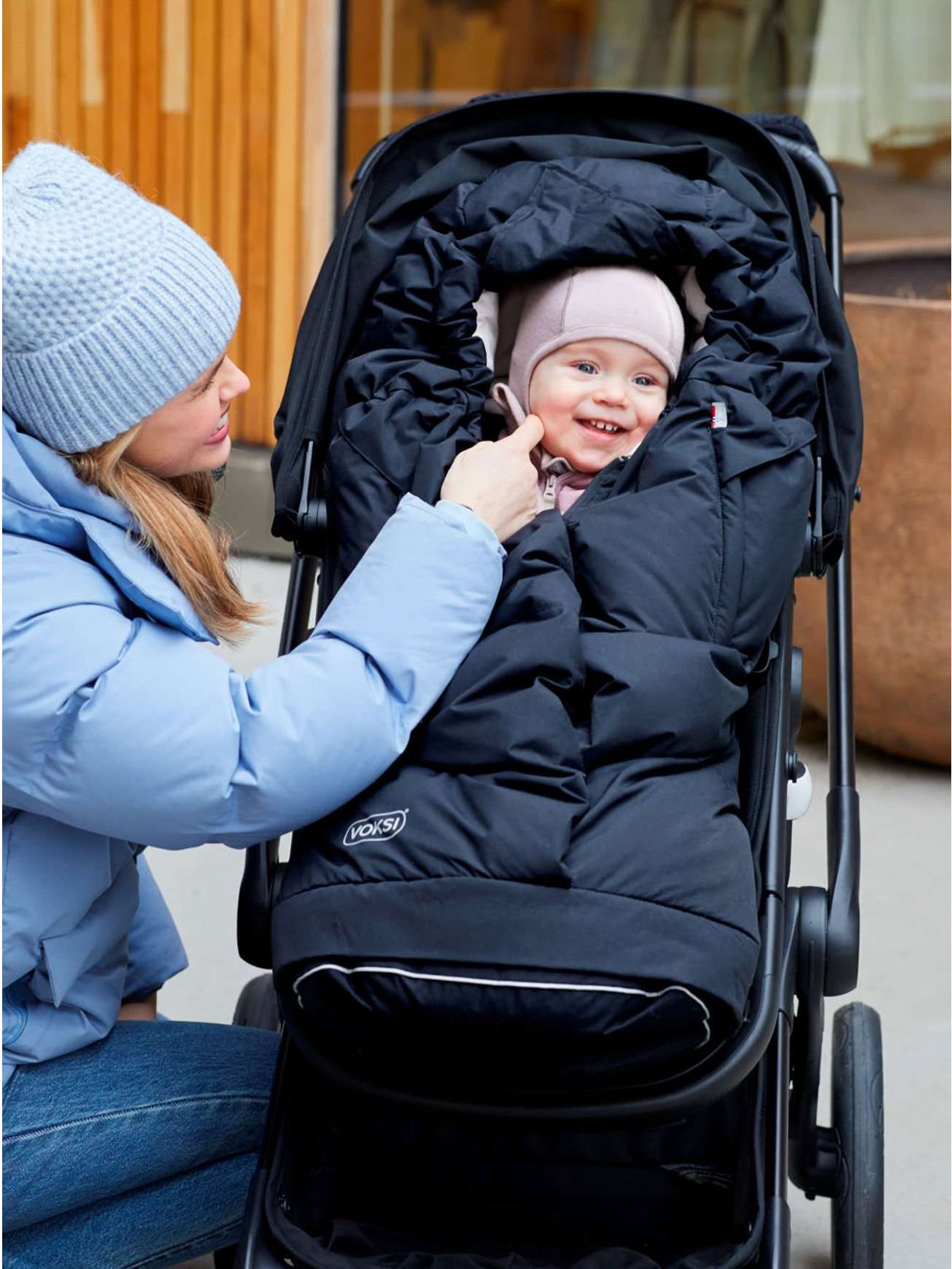 Vognposen er designet med innovative armåpninger som kan åpnes og lukkes med glidelås, og som gjør at barnet kan ta en aktiv del i det som skjer rundt seg, samtidig som det holder seg varmt i vognposen. Den unike utformingen av ryggåpningen gjør at denne vognposen lett kan monteres og brukes i vogner med ulike seler. Voksiposen er utstyrt med et antisklimateriale i ryggen som gjør at den holder seg på plass i vognen uten å skli. Forlengerdelen er inkludert i vognposen som enkelt kan åpnes opp med en glidelås i bunnen når barnet har behov for mer plass. Når barnet er lite vil den inkluderte forlengerdelen fylle nederste delen og sikre ekstra varme og komfort. Det følger med et mykt hodeunderlag som både gir ekstra komfort for babyen og beskytter stoffet under hode som både gir ekstra komfort for babyen og beskytter stoffet under hode. Snoren rundt hodeområde kan justeres etter værforhold og barnets preferanser. En sentrert glidelås i front gir lett tilgang på barnet og den brede klaffen kan brukes til å tette ekstra godt om barnet. Husk å ha godt med luft rundt hode til barnet og la alltid barn sove under oppsyn.