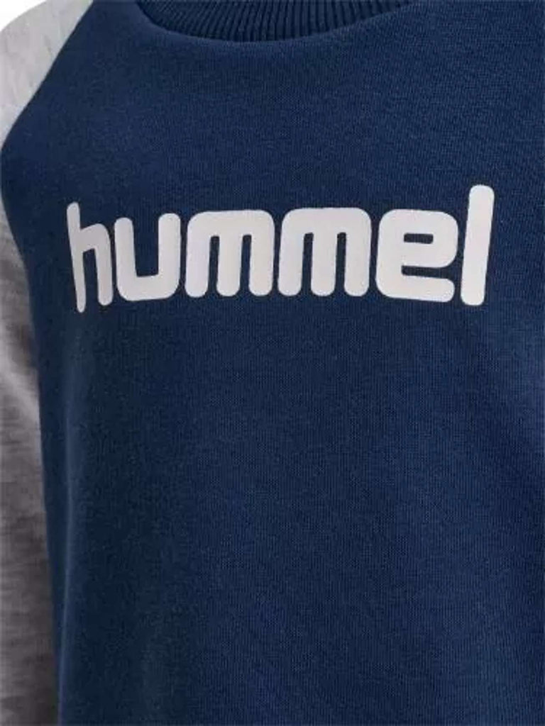 Denne hummel-joggedressen har en komfortabel og avslappet passform og er laget av en myk blanding av bomull og polyester. Toppen med rund hals har fargede ermer og en stor trykt logo på brystet, mens joggebuksen har elastisk linning og ankelmansjetter for en tettsittende passform.