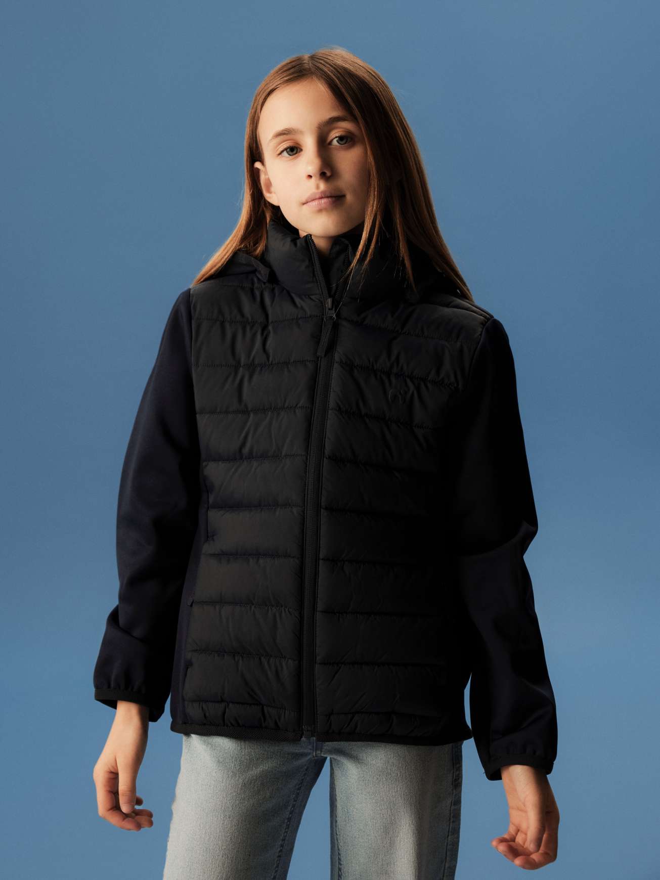 - Produkttype: Jakke - Hals: Høy, oppreist krage - Ermer: Lange ermer - Mansjetter: Elastiske mansjetter - Lukking: Glidelåslukking - Lommer: Forlommer - Ekstra detaljer: Elastisk kant i falden - Ekstra detaljer: Avtakbar hette for sikkerhet - Ekstra detaljer: Dekorative refleksdetaljer - Ekstra detaljer: Merke