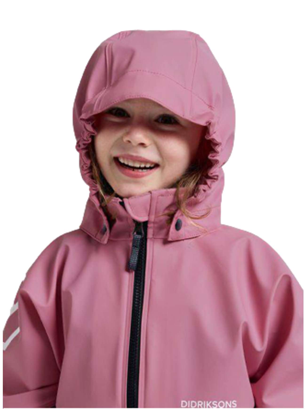 Regnjakken har avtakbar hette med trykknapper, hakebeskyttelse og synlige refleksdetaljer på rygg og mansjetter. Den myke fleeceforede kragen gir ekstra komfort på kjølige og våte dager. Justerbare ermeender sikrer god passform og hindrer vann i å trenge inn.