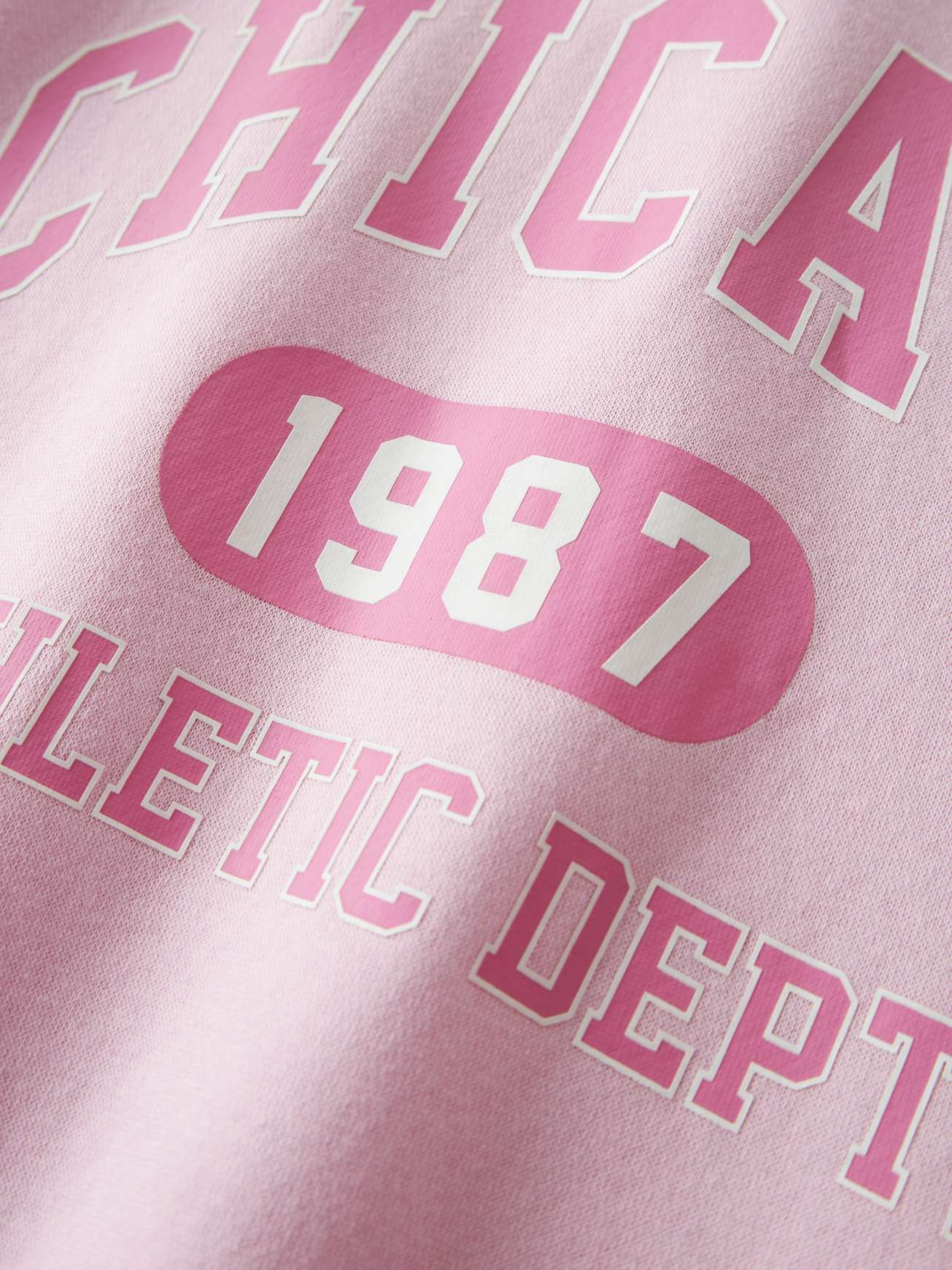 Genseren har rund hals og lange ermer, og et trykk foran gir antrekket et moderne og lekent uttrykk.