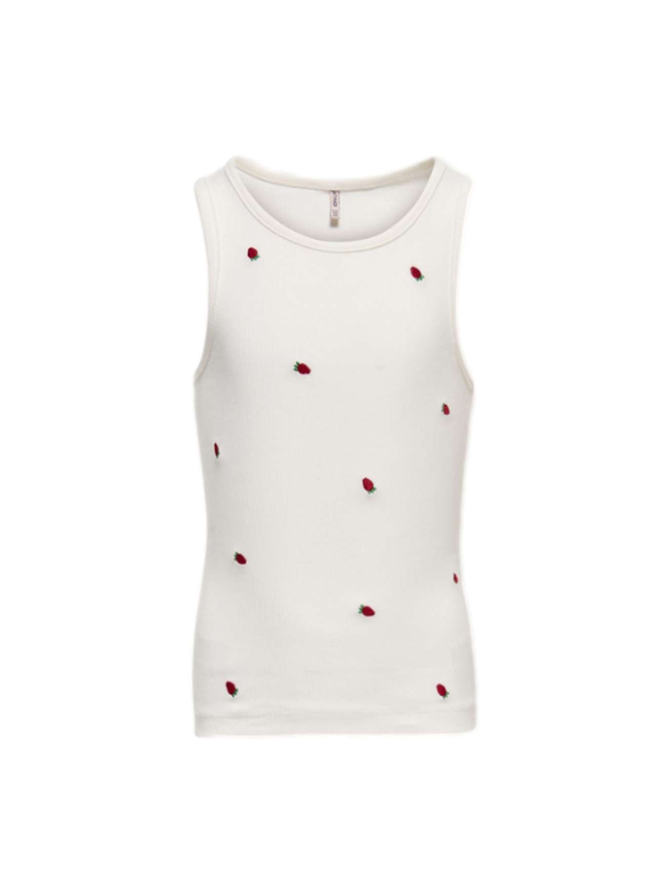 En søt og komfortabel singlet som er perfekt til varme sommerdager. Det lekne jordbærprintet gir et friskt og sommerlig uttrykk, mens den myke jersey-kvaliteten sørger for god komfort gjennom hele dagen.