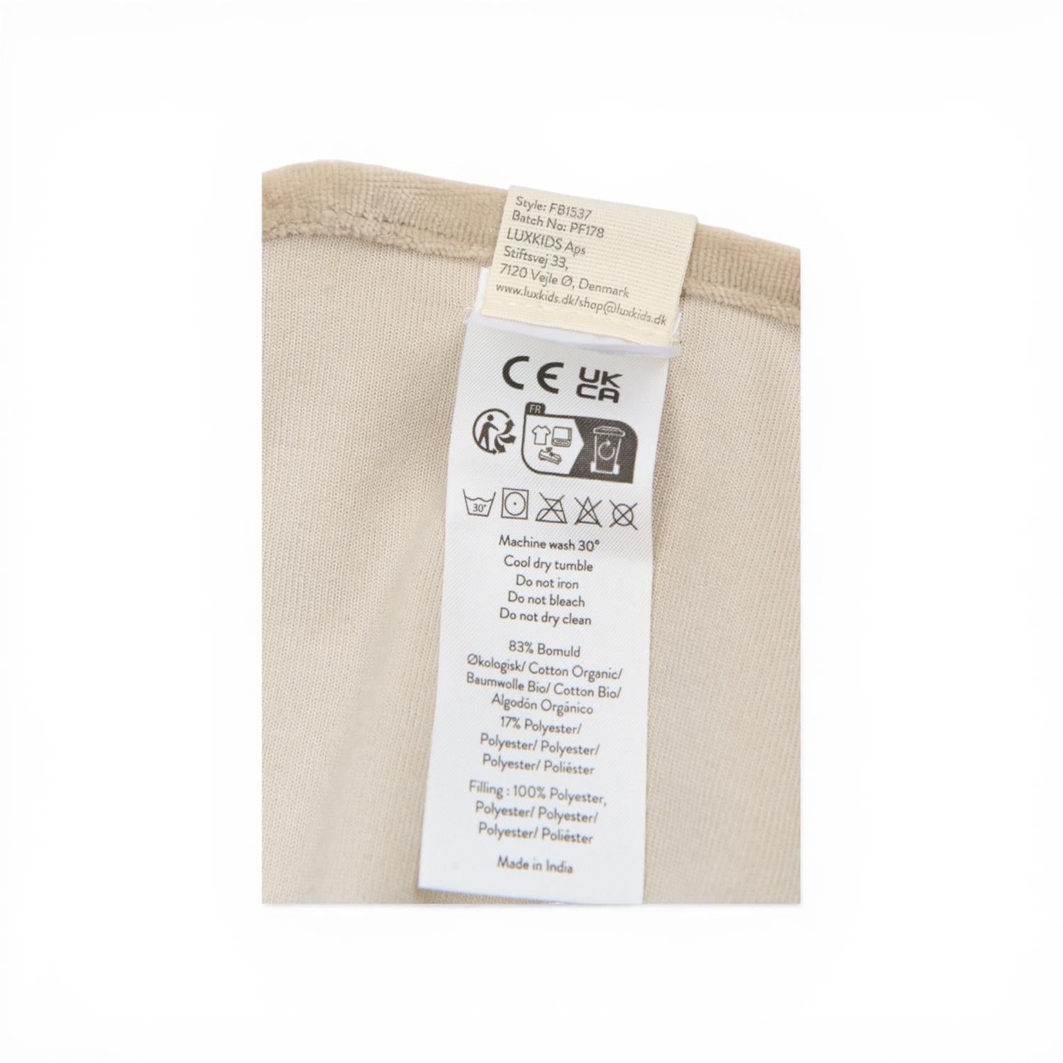 Koseklut: 83 % økologisk bomull, 17 % polyester
