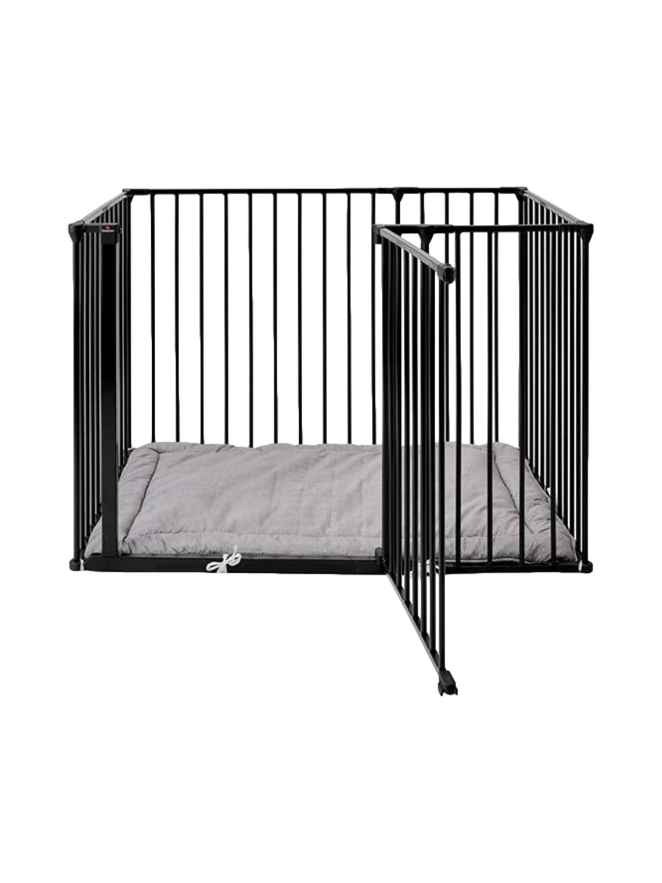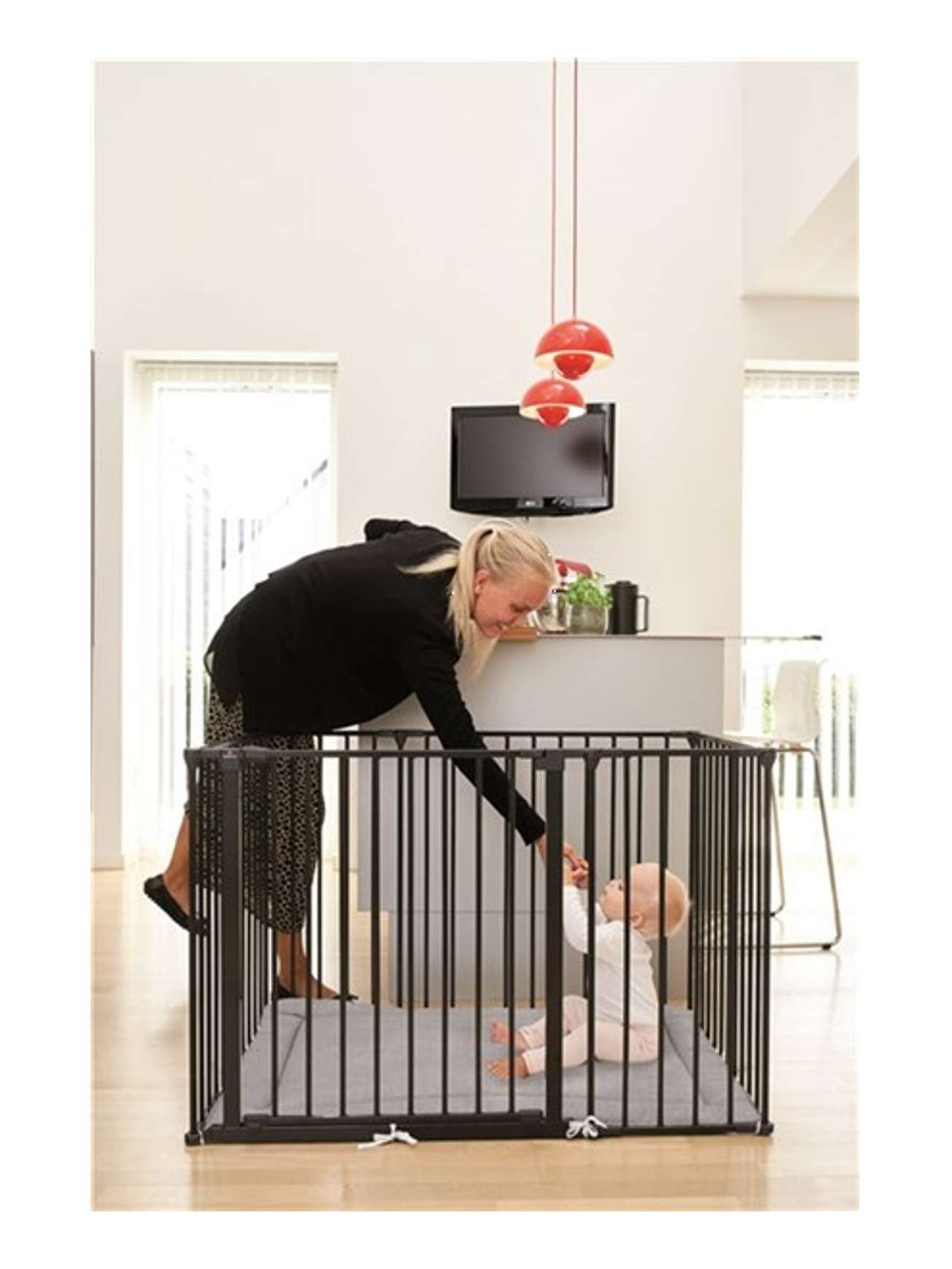 Du kan bruke BabyDan OLAF-lekegrinden til å skape et trygt lekeområde for den lille gullklumpen din. Leketeppet er mykt og har høye kanter for å gjøre det trygt for barnet ditt. Den brede åpningen gjør det mulig for deg å løfte barnet ditt opp fra teppet uten å få vondt i ryggen. Du kan åpne luken fra begge sider med bare én hånd. Når barnet ikke har bruk for lekegrinden lenger, kan du enkelt gjøre den om til en sikkerhetsgrind ved hjelp av veggbeslag, som må kjøpes separat. Du kan bruke det til å avskjerme en peis, en bred eller irregulær døråpning, en trapp eller som romdeler. Du kan utvide med både små og store seksjoner som kan kjøpes separat.